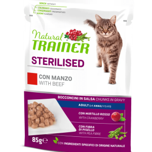 NATURAL TRAINER STERILISED ADULT MERLUZZO BOCCONCINI EN SALSA UMIDO