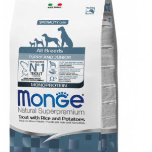 Monge Natural Superpremium All Breeds Puppy & Junior Monoprotein – Trota con Riso e Patate