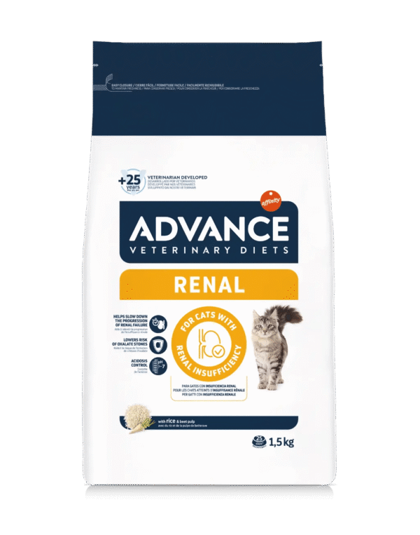 ADVANCE VETERINARY DIETS Renal Cat è un alimento dietetico completo indicato per: