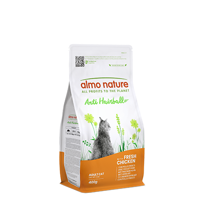 Almo Nature Anti Hairball con Pollo Fresco è un alimento secco completo formulato per aiutare a ridurre la formazione dei boli di pelo, grazie a un adeguato apporto di fibre che favoriscono il transito intestinale. L’elevata percentuale di pollo (43%), di cui 26% fresco, garantisce alta appetibilità e un buon apporto proteico.