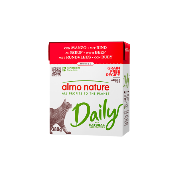 Daily con Manzo 380 g è un alimento umido completo per gatti adulti, preparato con manzo gustoso e ingredienti selezionati per offrire un pasto nutriente e bilanciato. La consistenza morbida e l’elevata appetibilità lo rendono ideale per l’alimentazione quotidiana, anche per gatti con gusti esigenti.