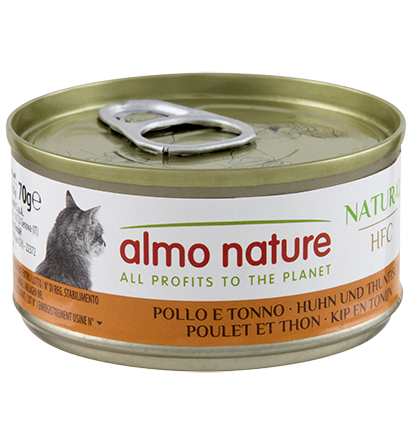 HFC Natural Pollo e Tonno è un alimento complementare naturale e altamente appetibile, preparato con pollo e tonno selezionati Human Grade, originariamente idonei al consumo umano. La combinazione di due proteine nobili garantisce gusto intenso, elevata digeribilità e un apporto nutrizionale equilibrato, ideale per gatti adulti anche dal palato più esigente.