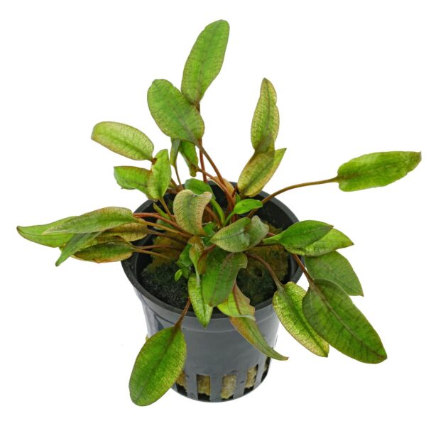 Dopo il trapianto può manifestare la tipica “fusione delle Cryptocoryne” (perdita temporanea delle foglie): è un fenomeno normale. Con condizioni stabili la pianta ricrescerà sana e più colorata.