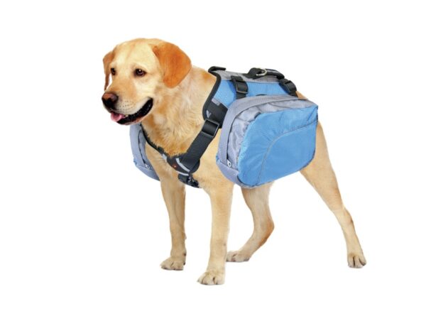 Pettorina per cani con 2 sacche laterali portaoggetti, ideale per trasportare piccoli accessori durante le passeggiate.
