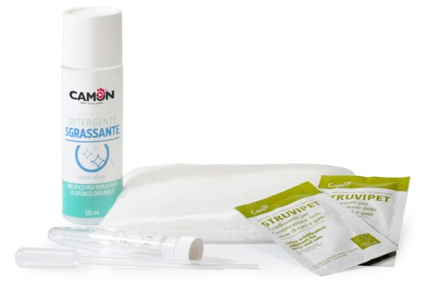 Urinary Kit è un sistema completo e sicuro per raccogliere un campione di urina del gatto, pensato per facilitare le analisi veterinarie. Utilizza una lettiera in perle non assorbente che permette di ottenere il campione senza contaminazioni.
