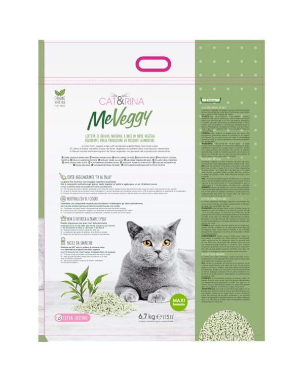 Cat&Rina MeVeggy Lettiera Naturale 15 l è una lettiera ecologica, efficace e sostenibile, realizzata con fibre vegetali recuperate dalla produzione alimentare. Questa alternativa naturale alle lettiere tradizionali offre prestazioni elevate senza rinunciare alla praticità e al comfort per il tuo gatto.