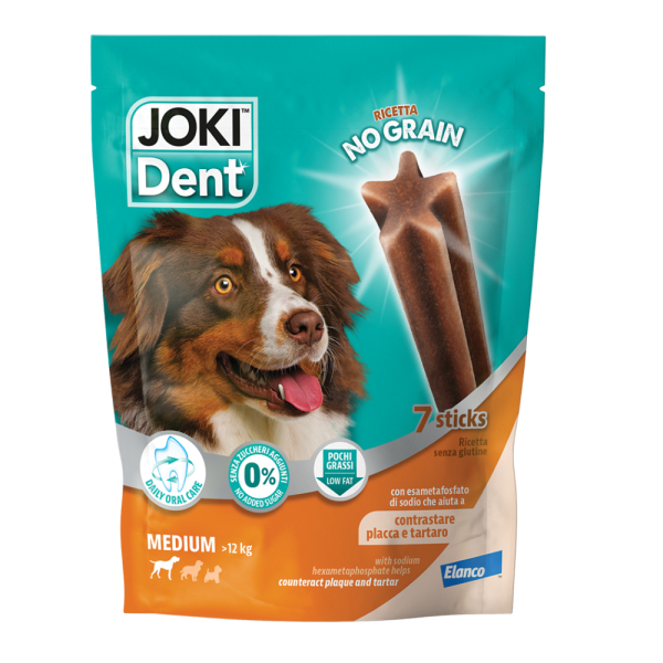 Joki Dent No Grain è lo snack pensato per aiutare il tuo cane a mantenere denti e gengive in salute. Grazie alla sua formula senza glutine e alla particolare forma a stella, favorisce una masticazione prolungata che riduce la formazione della placca e rimuove i residui di cibo.