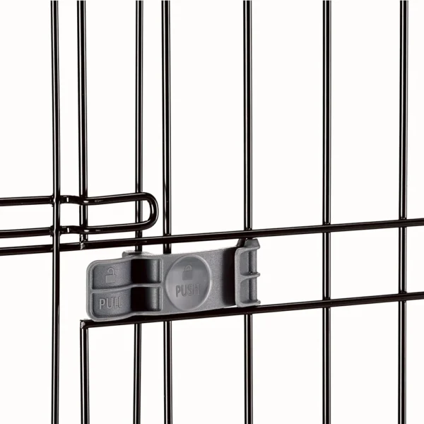 Grazie al pannello divisorio regolabile, il box si adatta alla crescita del cane, riducendo o ampliando lo spazio interno in base alle esigenze. La struttura robusta in rete metallica, combinata con base e cornici in plastica, lo rende adatto anche al trasporto in automobile.