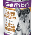 Gemon All Breeds Puppy & Junior Bocconi con Pollo e Tacchino รจ un alimento umido completo e bilanciato, studiato per supportare la crescita sana e la vitalitร  dei cuccioli di tutte le taglie.