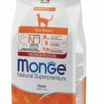 Monge Natural Superpremium Monoprotein Sterilised Anatra* è un alimento completo e bilanciato per gatti adulti sterilizzati, sviluppato per supportare il benessere nutrizionale e il mantenimento del peso corporeo ideale dopo la sterilizzazione.