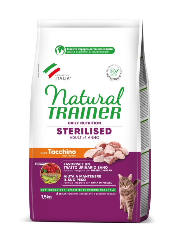 Recensisci per primo “NATURAL TRAINER DAILY NUTRITION STERILISED ADULT +1 ANNO CON TACCHINO E FIBRA DI PISELLO”