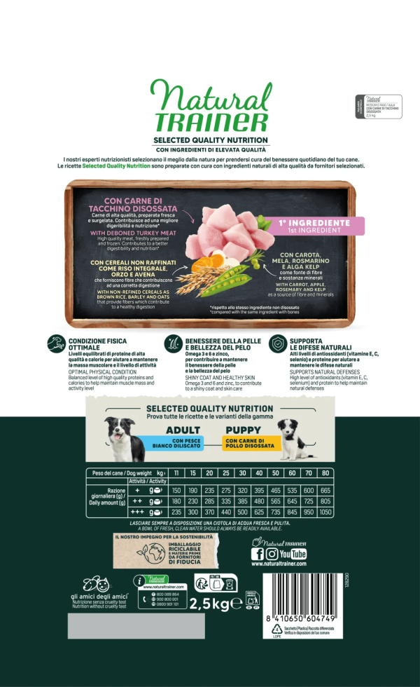 NATURAL TRAINER NUTRIZIONE DI QUALITÀ SELEZIONATA – ADULTO MEDIO MAXI – CON TACCHINO DISOSSATO