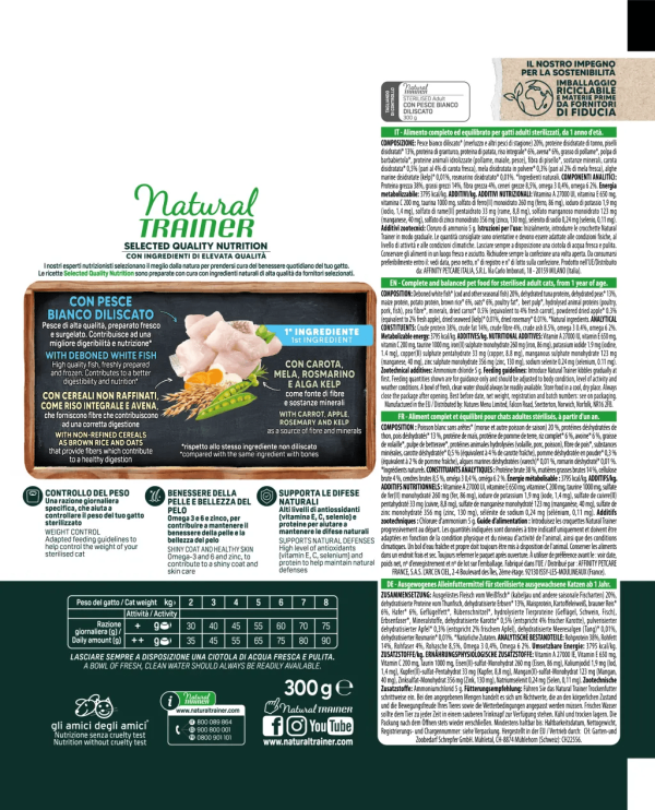 NATURAL TRAINER NUTRIZIONE DI QUALITÀ SELEZIONATA – ADULTO STERILIZZATO – CON PESCE BIANCO DISOSSATO