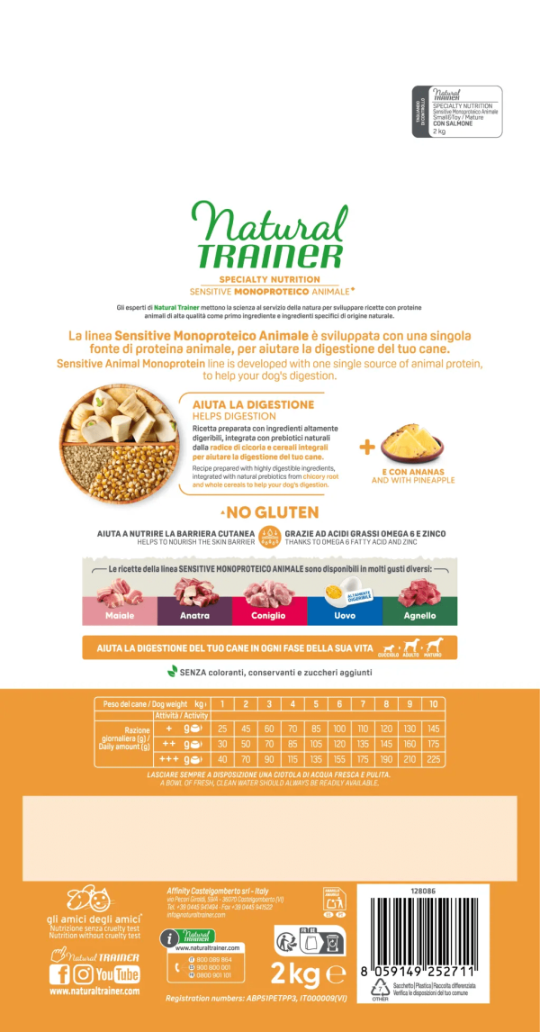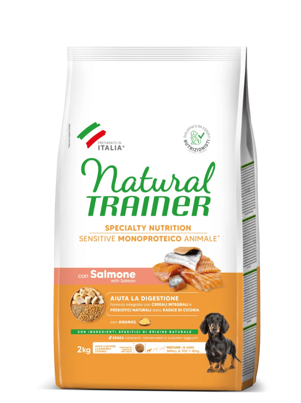 NATURAL TRAINER SPECIALTY NUTRITION SENSITIVE MONOPROTEICO ANIMALE NO GLUTEN SMALL&TOY MATURE CON SALMONE E CEREALI INTEGRALI