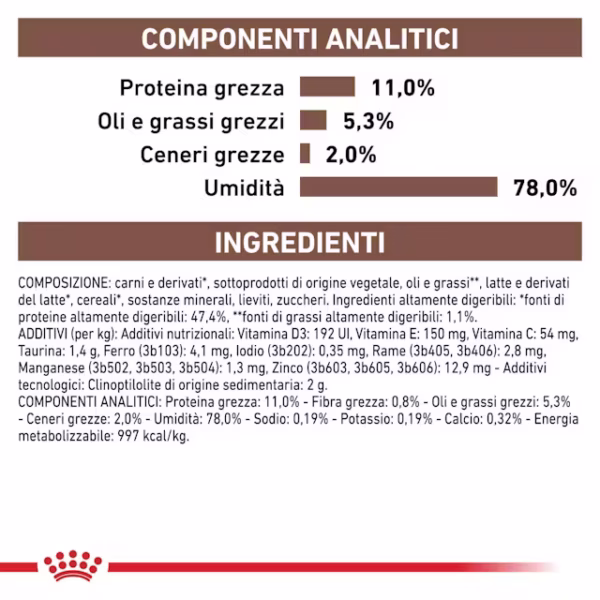 ROYAL CANIN® Gastrointestinal Kitten umido è un alimento dietetico completo studiato per sostenere la salute digestiva e favorire una crescita ottimale nei gattini. La formula combina nutrienti altamente digeribili con fibre selezionate e prebiotici, garantendo un supporto completo al microbioma intestinale e al corretto sviluppo durante i primi mesi di vita.