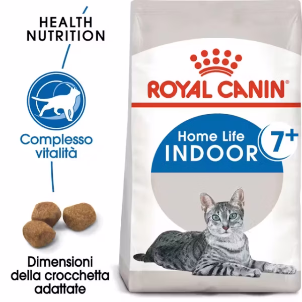 ROYAL CANIN® Indoor 7+ è un alimento completo e bilanciato, appositamente formulato per i gatti maturi che vivono prevalentemente in casa. Con l’avanzare dell’età, i gatti possono diventare più sedentari e necessitano di nutrienti specifici per supportare la vitalità, la salute articolare e il benessere digestivo.