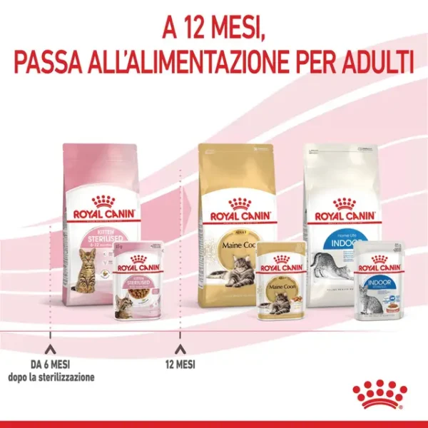 🍼 ROYAL CANIN® Kitten Sterilised in salsa è formulato per supportare i fabbisogni nutrizionali dei gattini sterilizzati nella “fase di consolidamento” della loro crescita (6-12 mesi).