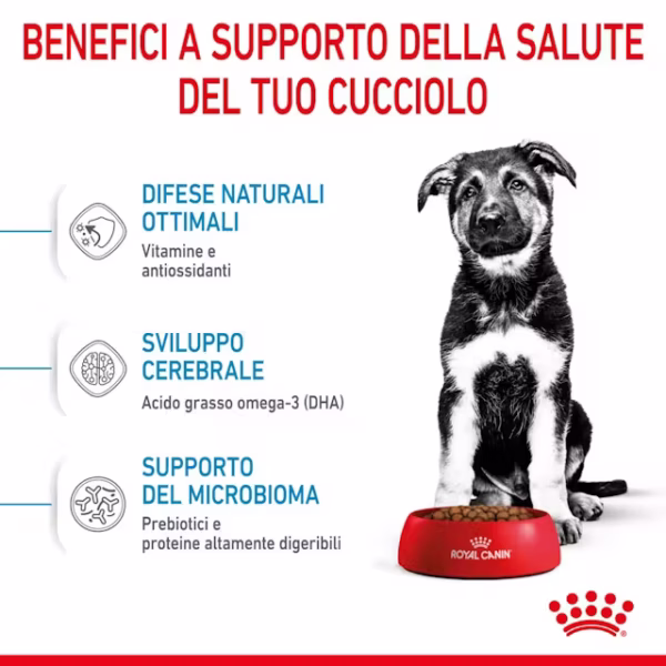 Specifico per sostenere la crescita prolungata dei cuccioli di grande taglia.
