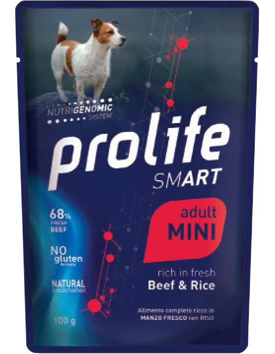 Ricetta gustosa e bilanciata con manzo fresco (68%) e riso altamente digeribile, formulata per rispondere alle esigenze specifiche dei cani adulti di piccola taglia. Con un contenuto controllato di grassi e proteine, supporta il mantenimento del peso forma e del tono muscolare. Arricchita con L-carnitina, omega 3 e 6, e prebiotici naturali (FOS) per la salute digestiva.